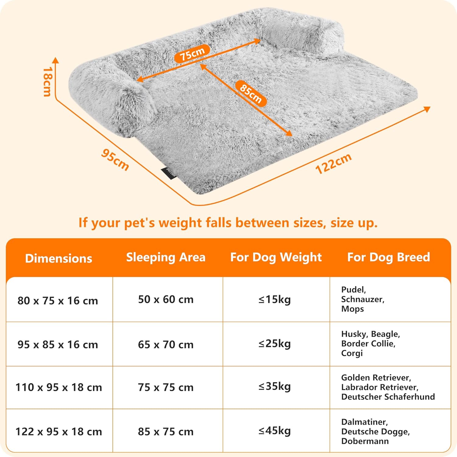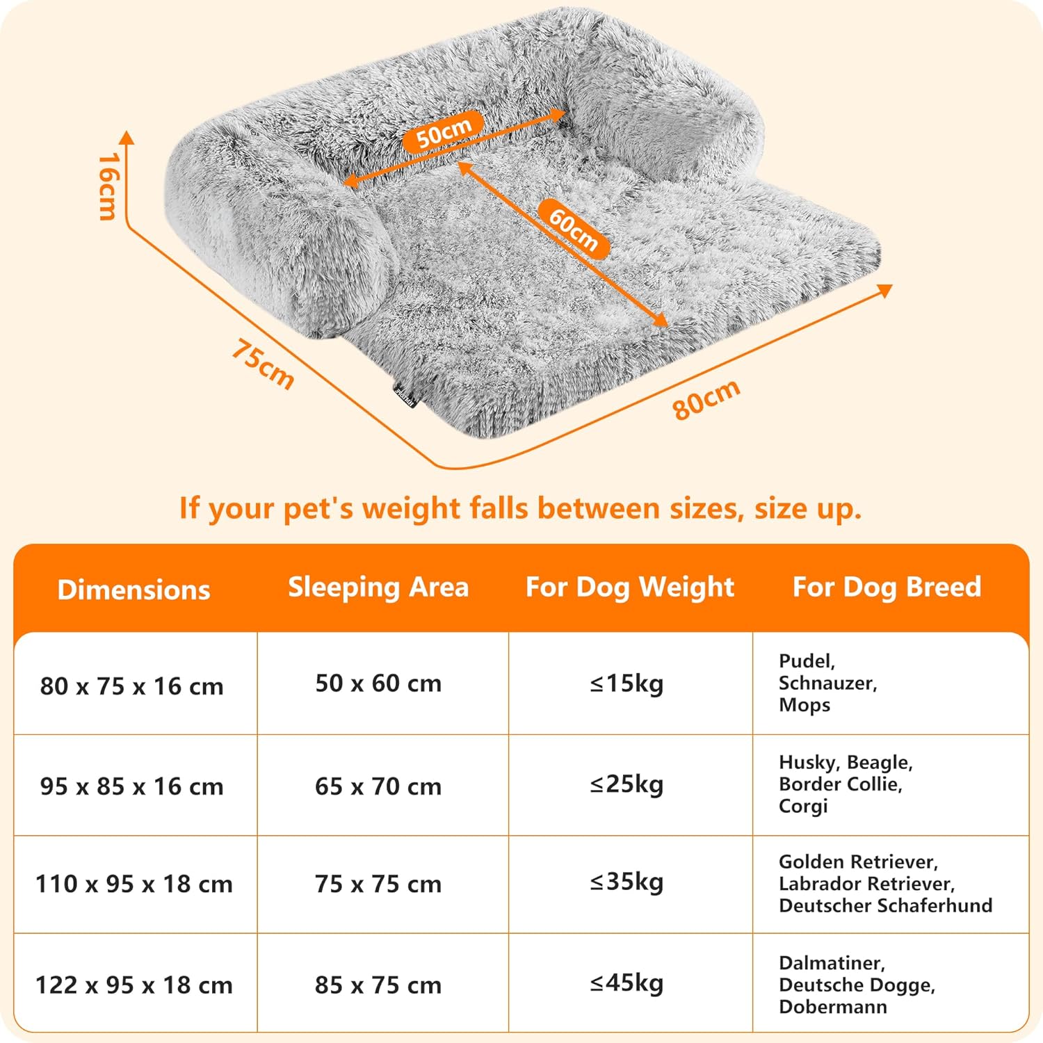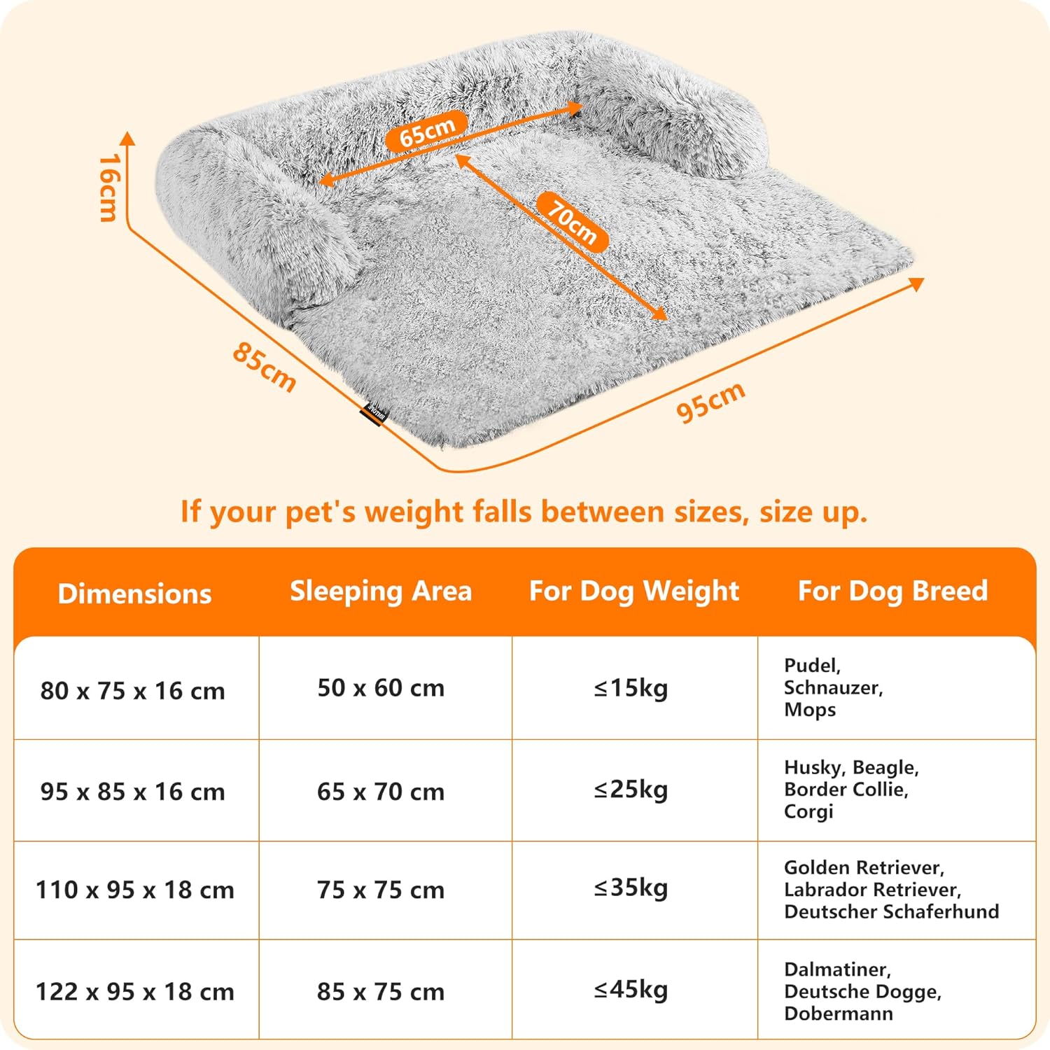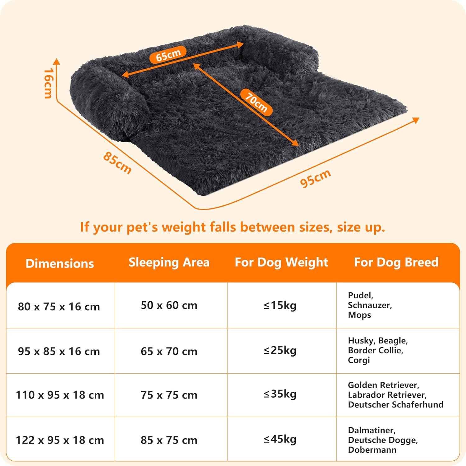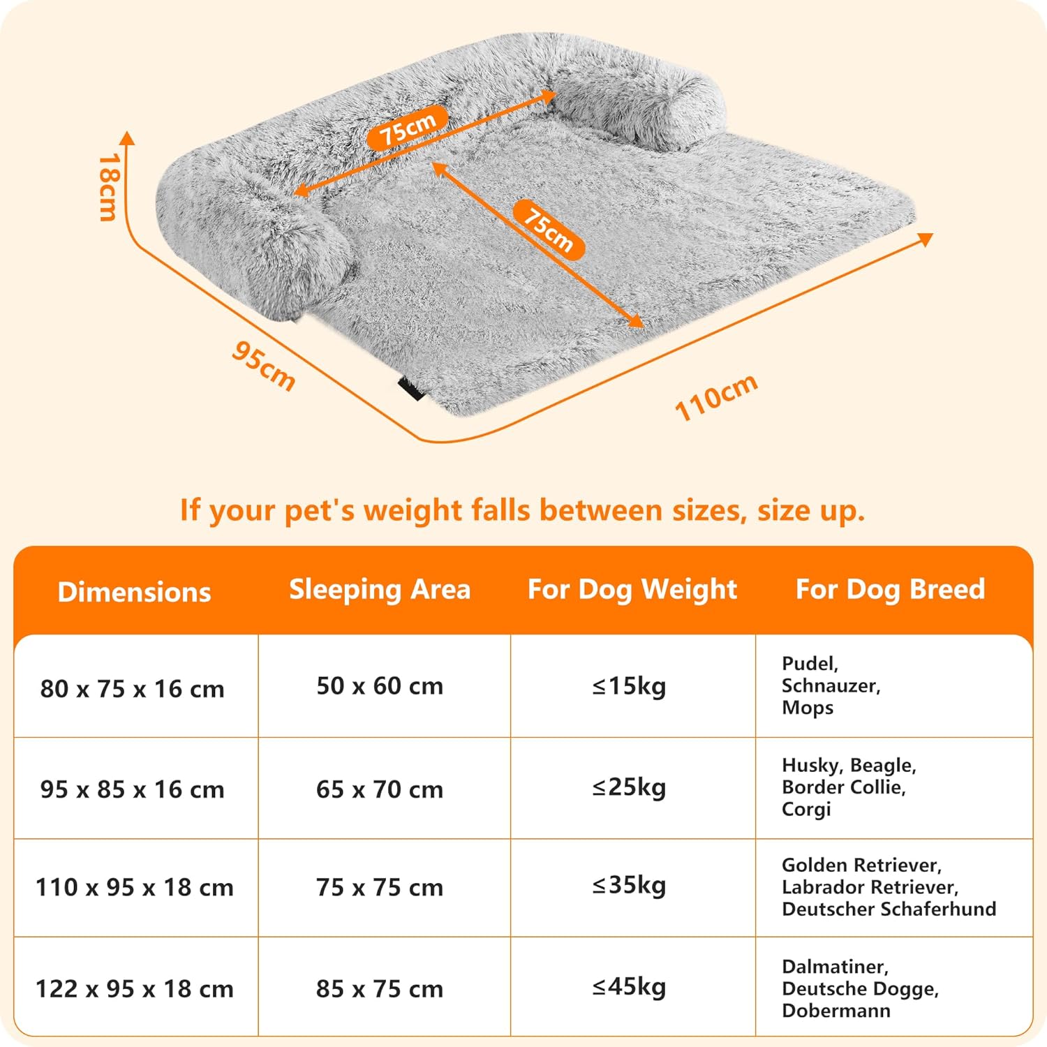 Giv din hund det ultimative hvilested med dette multifunktionelle Hundebett, der både fungerer som Hundedecke, Hundesofa, Sofaschutz og Hundekissen. Det 4 cm lange fluffige plush-lag og 16 cm høje U‑formede kant tilbyder optimal støtte til hundens hoved og nakke og skaber en trygheds  følelse